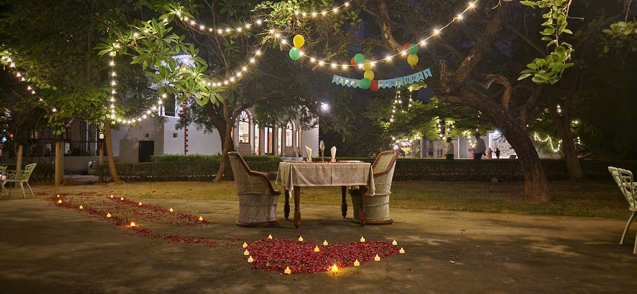 Located on the outskirts of a small town named bijainagar....a lot of great landscaping arround which makes it an awsome place to stay... The swimmimg pool is a bit small. The open air restaurant is way too romantic with the lightings arround and peacocks which keep roaming inside the campus....